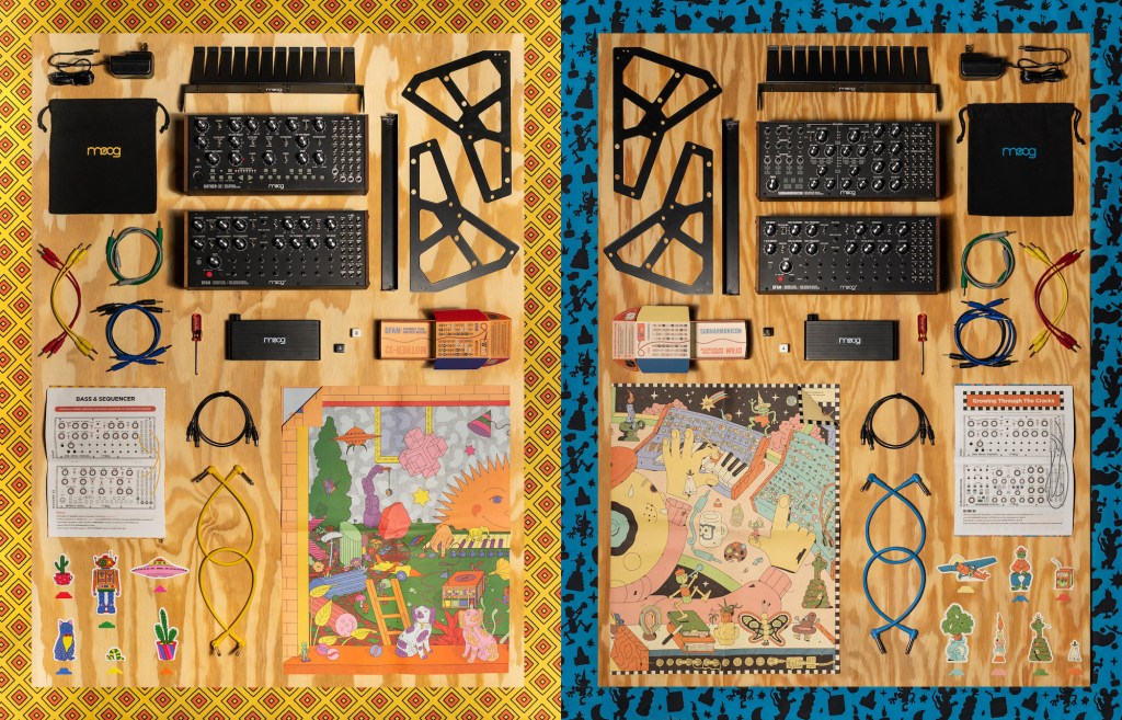 Moog have always had a strong focus on creativity and artist collaboration. As part of the Sound Studio Kit illustrators Jim Stoten (Mother-32 & DFAM) and Philip Lindeman (Subharmonicon & DFAM) have designed custom artwork in the form of characters, posters, and other interactive objects that accompany each instrument setup. The kit also includes experimental patch sheets, exploration games, and guided exercises.